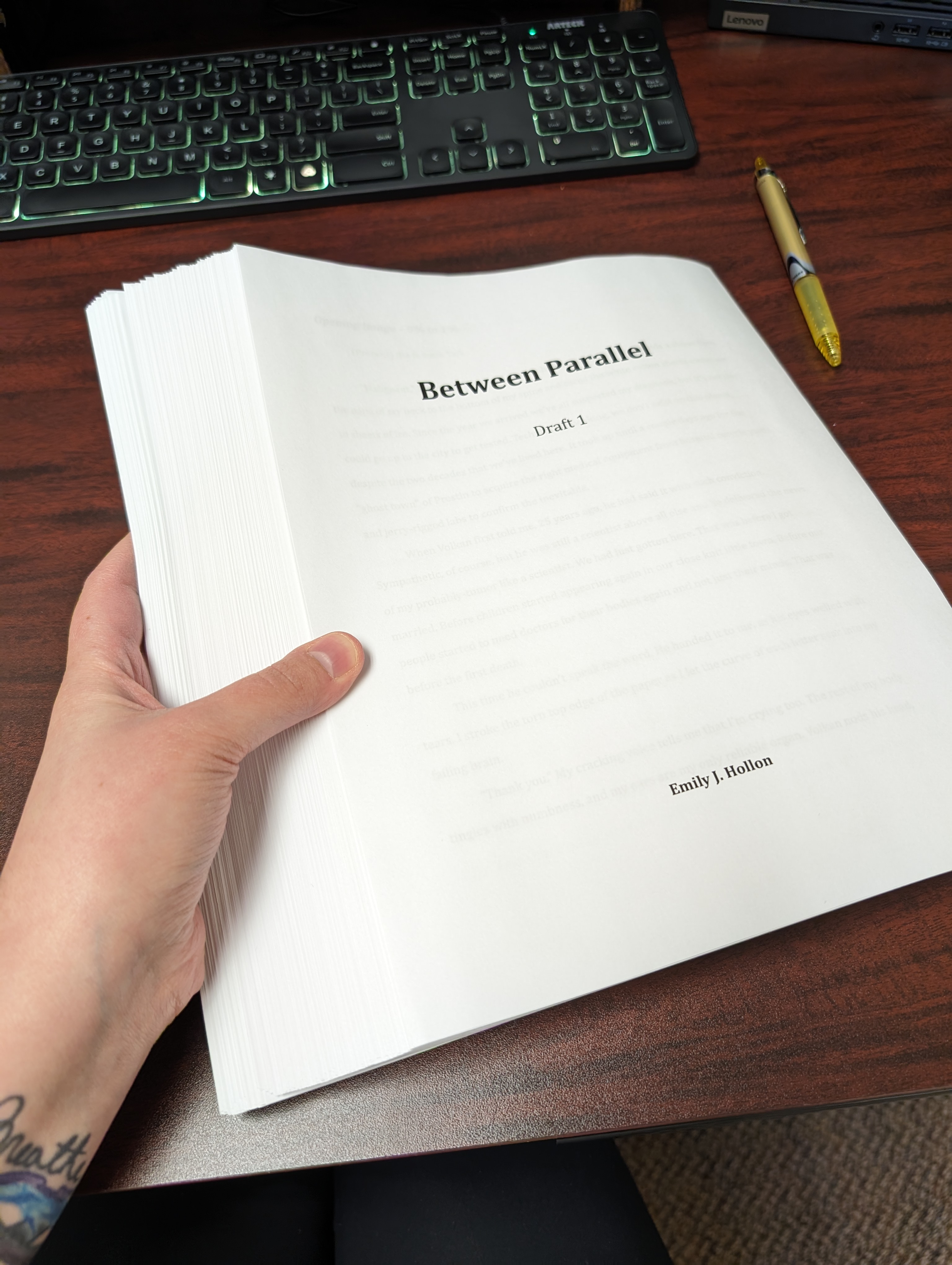 The novel in question has been through so many growing pains and revisions that the original idea is long since buried in a digital recycle bin somewhere, but my dedication to the heart of the story has never waivered. If you’d like to learn more about Between Parallel, and my other writing, please see the writing section of this website.